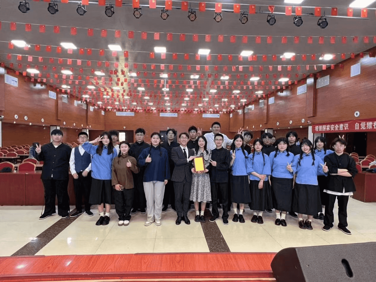 在战争残酷画面的递进中,22电影学院学生张心悦、闫治廷、牛嘉昳、王洪珺、李丛政、教师邹敏敏饰演的6位革命先烈,从不同时空齐聚一起,展现那段屈辱历史。同时,19位由学生扮演的新时代青年,气宇轩昂地阔步走上舞台,共同演绎出振奋人心的舞台历史剧。末尾处,22电影学院学生导演李杰午携全体新时代青年们,齐声朗诵《少年中国说》,将活动气氛推到高潮。短短十几分钟,把现场评委与观众仿佛拉回到那段血与火的年代,结尾全体评委充分肯定了节目的优异表现,并期待我们在学习生活中能勇于展现自我,树立正确的人生观、价值观,积极参加各类活动来提高自身修养。