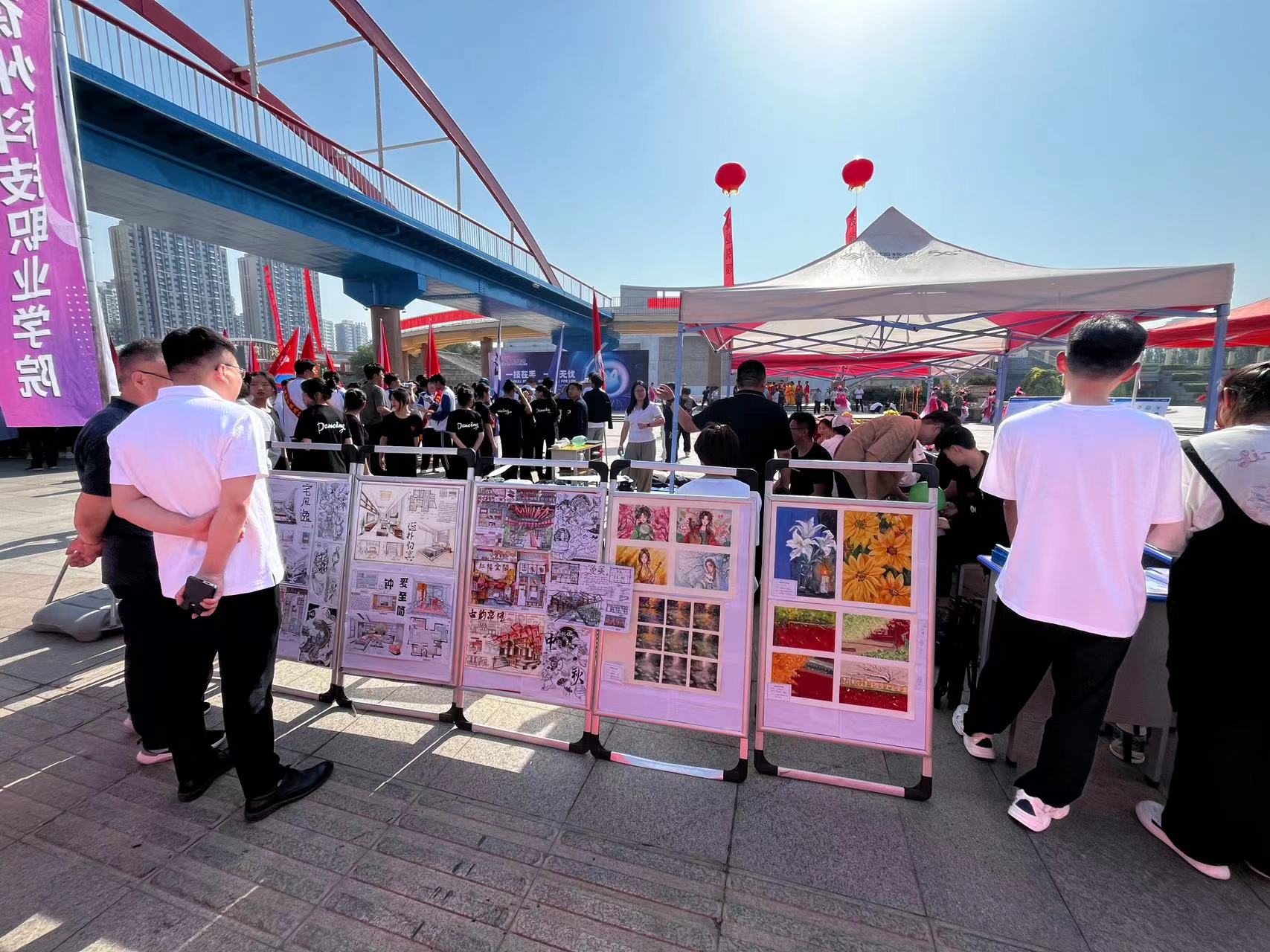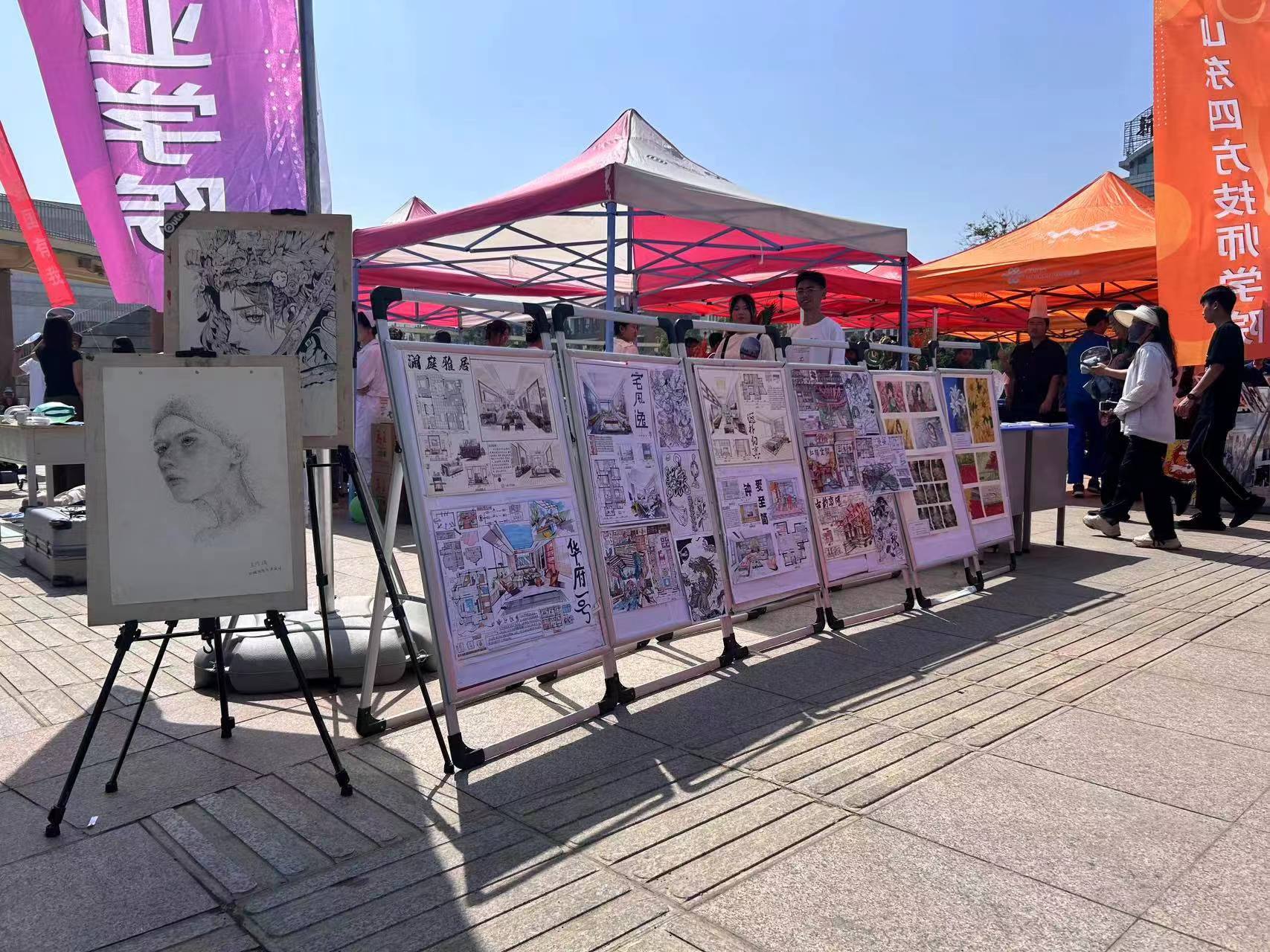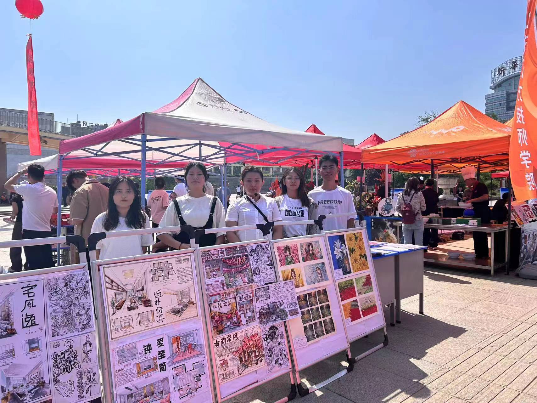 艺术设计专业的师生们精心准备了一系列的作品展示,包括平面构成、色彩构成、立体构成和环境艺术设计等。在活动现场,色彩斑斓的展板和独具匠心的手工作品吸引了大量观众驻足欣赏。同学们详细讲解了每件作品的设计理念与创作过程,展示了他们扎实的专业知识和丰富的创造力。同时,艺术设计专业的师生们还进行了现场创作展示。一些学生在导师的指导下,当场进行绘画和设计,吸引了许多观众的目光。现场观众不仅可以欣赏到他们的创作过程,还可以与师生互动,亲自体验设计的乐趣。这不仅提高了学生们的自信心,也让观众们对艺术设计有了更深的了解。