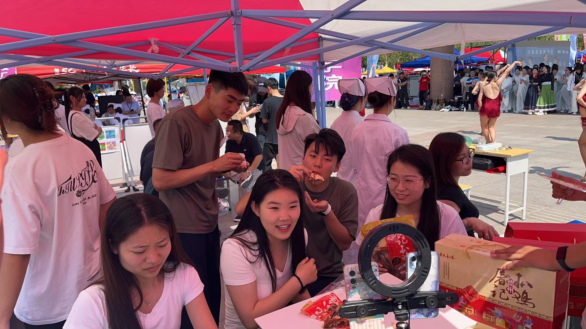 电商专业:现场直播推销德州特产扒鸡