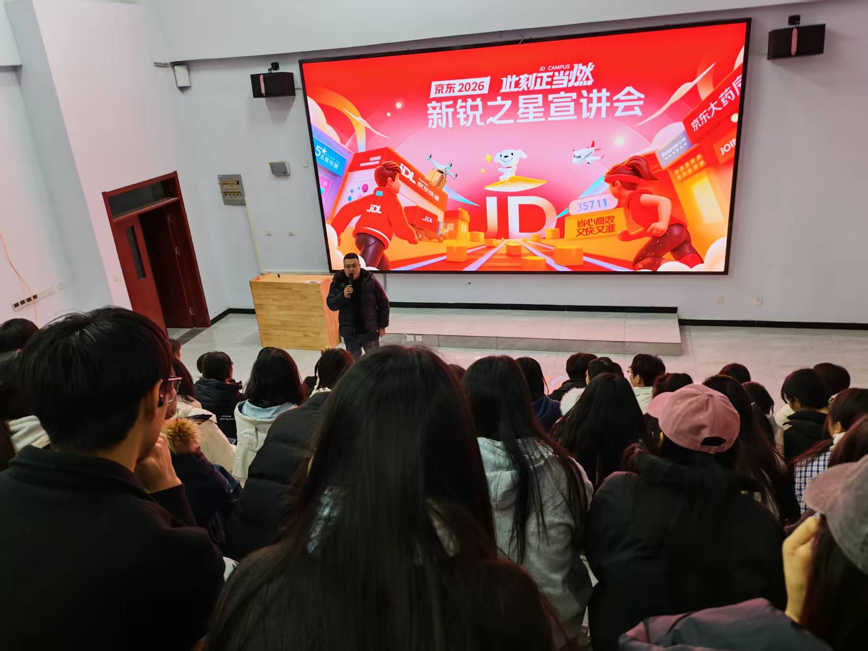 近日数字经济学院利用晚自习时间特邀京东旗下企业资深专家开展就业主题宣讲活动。数字经济学院23级全体辅导员及26届毕业生共200余人齐聚现场,共同探寻数字经济领域职业发展新机遇。