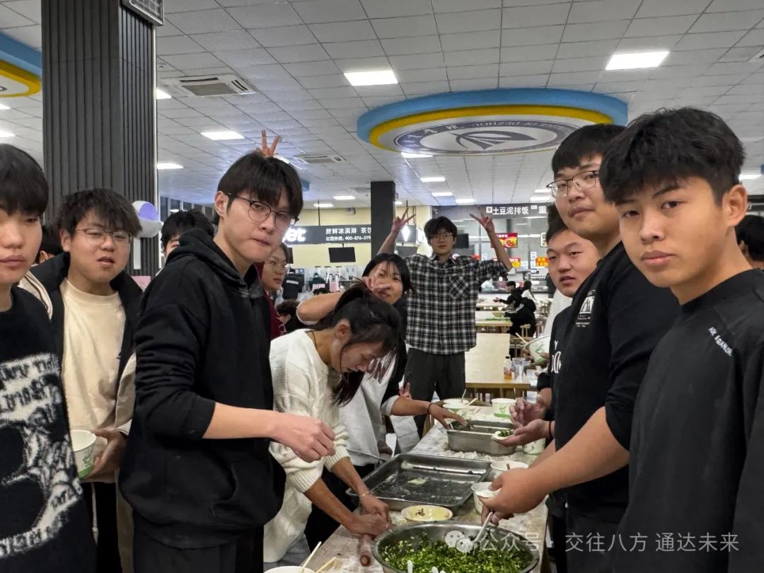 活动现场热闹非凡,面粉、馅料等食材整齐地摆放在桌上。同学们都跃跃欲试,不少人一开始还有些手忙脚乱。在这欢乐的氛围中,互相抹面粉的场景成为了一道独特的风景线。欢笑声伴随着面粉的飞扬,仿佛将所有的压力和烦恼都抛诸脑后。同学之间的情谊在这小小的互动中不断升温,原本紧张的学习氛围被轻松愉悦的气息所取代。