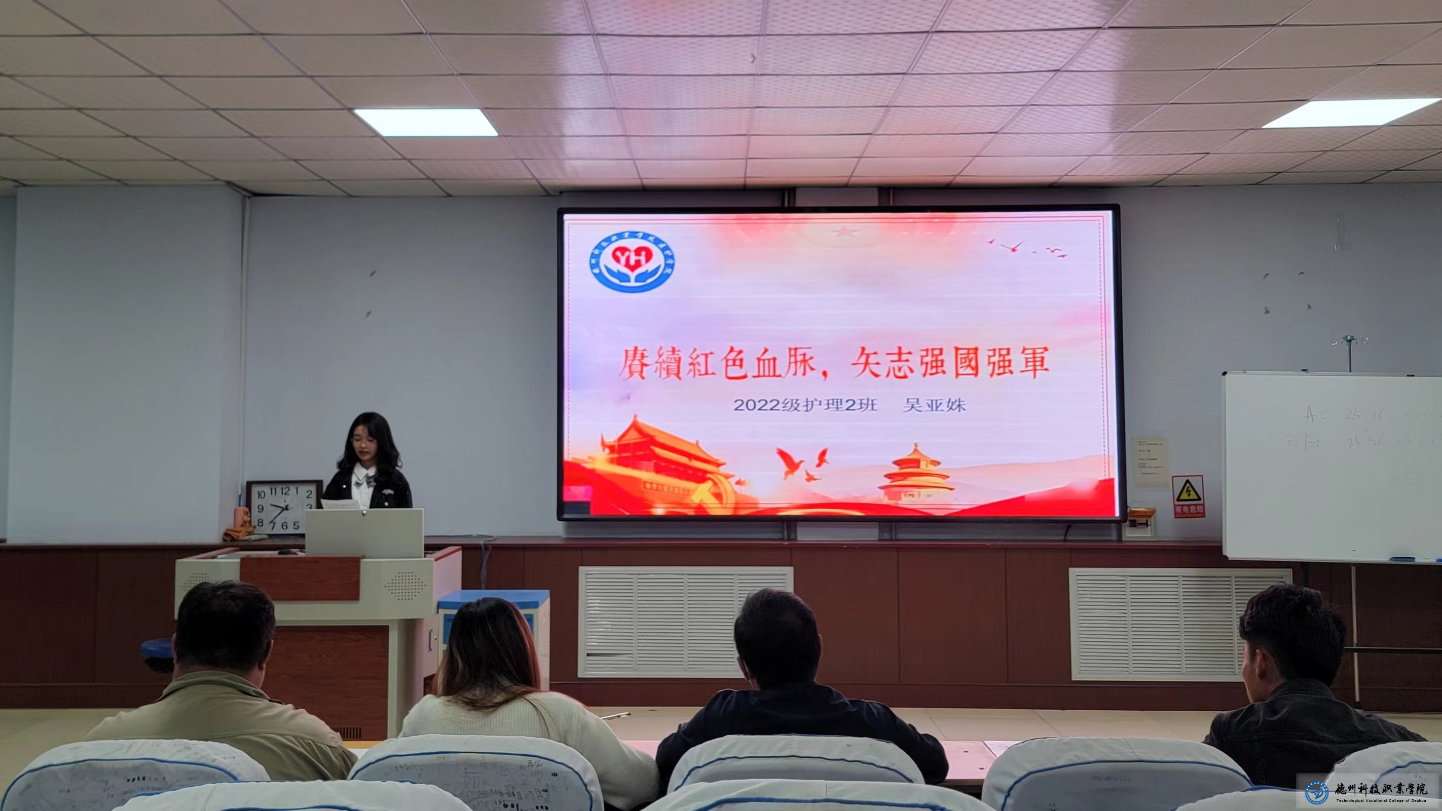 随着时代的发展,科技也在不断发展,国家、种族的界限日益缩小,人们的生活越来越好,素质也越来越高,和平与发展成了当今社会的主题。我系在10月9日在医护实训楼三楼示教室开展了“爱我国防的主题演讲”,此次演讲比赛的评委老师有李超老师、卢立儒老师、董文聪老师、王鑫雨老师。